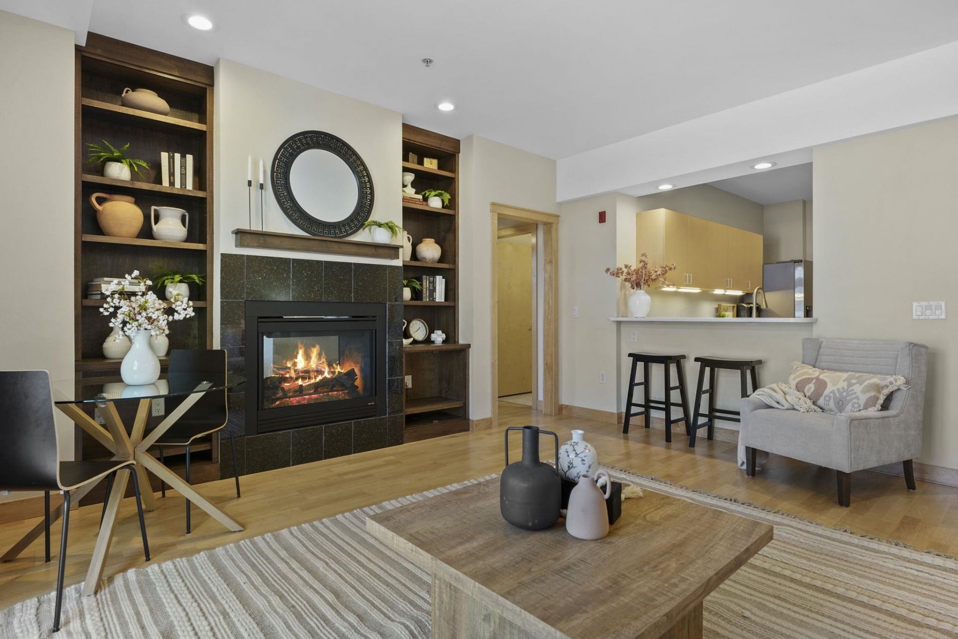 Show 4/17. Live in the heart of Madison-charming contemporary condo in the highly sought-after Williamson-Marquette neighborhood?known for its walkability, vibrant shops, cafs, & unbeatable convenience. Everything you need is just steps away, from groceries to bike paths & public transit. Inside, natural light & beautiful hardwood floors create a warm, inviting feel. The open living and dining area is anchored by a see-through gas fireplace, adding comfort and ambiance. The kitchen flows seamlessly into the great room with a breakfast bar, perfect for everyday living or entertaining. A private garden-level balcony offers a quiet urban retreat. Two bedrooms provide flexibility, including a spacious primary with walk-in closet & a 2nd ideal for a home office/den. Spacious full bathroom, in-unit laundry, foyer storage, elevator access, underground parking, & a storage unit complete this effortless, centrally located home. Fresh paint throughout, newer appliances, & amazing neighbors too!