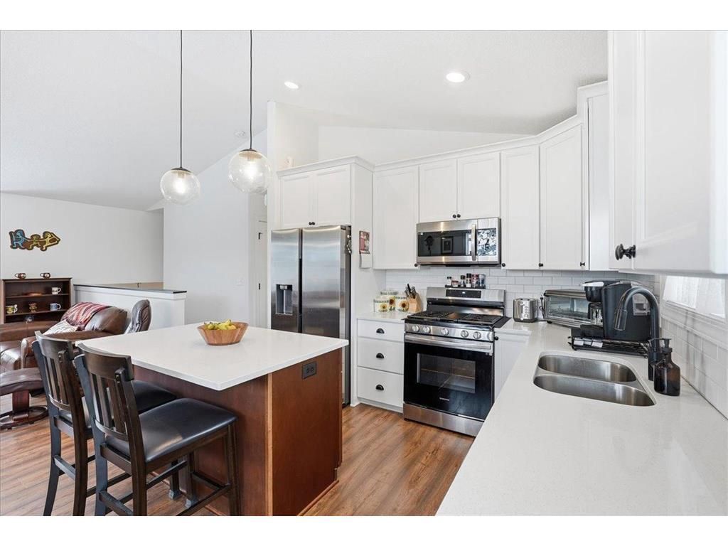 Located in New Richmond, this like-new split-entry home offers the perfect blend of style, space, and functionality. With four bedrooms - two on the main level and two in the lower level - this layout provides flexibility for families, guests, or home office space. The main level features a beautiful kitchen complete with quartz countertops, modern finishes, and plenty of workspace. Just off the kitchen is a dining area that leads to a new maintenance-free deck - perfect for grilling, relaxing, or enjoying your morning coffee. The kitchen flows seamlessly into the living area, creating an inviting atmosphere for everyday living and entertaining. You'll also find two bedrooms, a full bathroom, and convenient laundry. The lower level offers a spacious family room with a walkout to the backyard patio, making it ideal for gatherings or relaxing evenings at home. Two additional bedrooms and another bathroom complete the lower level. Step outside and enjoy the amazing patio area featuring a gas fireplace - the perfect spot for entertaining or unwinding year-round. The well-insulated three-car garage provides ample storage and comfort during Wisconsin winters. Still feeling like brand new, this home offers modern finishes, thoughtful design, and incredible indoor and outdoor living - all in a fantastic location.