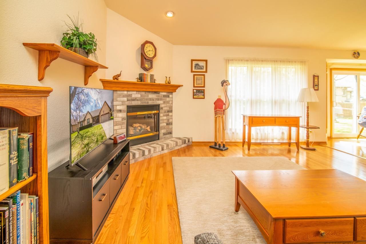 This charming ranch-style home offers the perfect blend of modern comfort and classic craftsmanship. Designed with an open-concept floor plan, the main living area features gorgeous hardwood flooring and rich woodwork that creates a warm, inviting atmosphere. The heart of the home is a spacious great room anchored by a cozy gas fireplace, perfect for relaxing evenings. The thoughtful layout includes a private master bedroom suite and two additional bedrooms, providing plenty of space. A dedicated office or den offers a quiet retreat for remote work or reading. French Doors and a well designed pocket-door provides even more privacy to your office. For ultimate convenience, the main-floor laundry room is easily accessible and all appliances are included. Plus there is a heated 3 car garage.