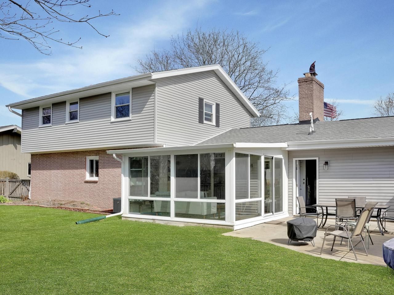 Discover this meticulously maintained 4 bed, 1.5 bath home in a convenient New Berlin subdivision. Move in ready & full of charm - you'll enjoy an updated kitchen w/newer cabinetry, granite counters, under cabinet lighting, newer stainless appliances & a classic kitchen sink area w/window overlooking the fully fenced backyard! Main floor interior w/newer LVP flooring + upper level has new carpeting + fresh interior paint throughout! Your new south facing FOUR season room w/heat & A/C + door to backyard patio & glass walls overlooking the yard will become your new fav space! Upper level has 4 bedrooms + full bath & closets have built in shelves. Bonus items: poured concrete foundation, concrete driveway & garage floor (2022) + vinyl windows (2023) + new washer/dryer + 1 year home warranty!