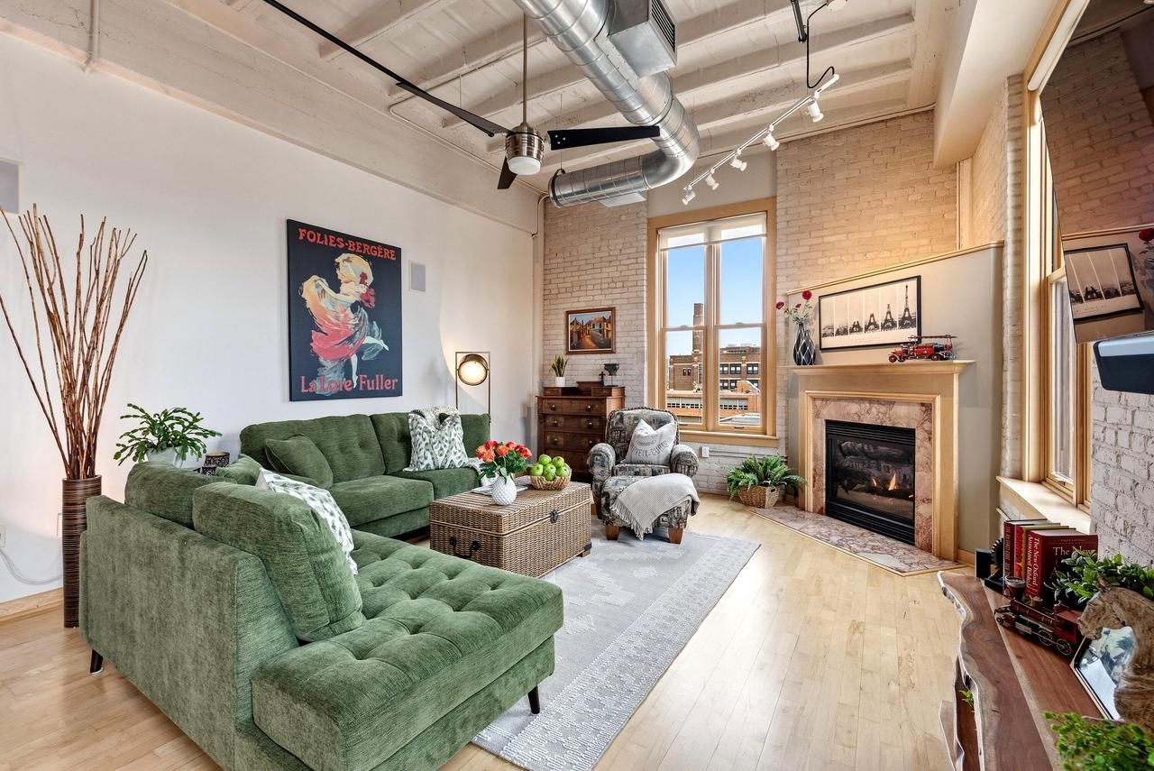 Come home & re-invent yourself! This converted ice cream factory loft in the heart of East Town offers soaring 12 Ft concrete beamed ceilings w/exposed brick. This sun-filled S/E corner condo is bursting w/light through new high quality energy & sound reducing Anderson Windows! Open Concept Living & Dining Spaces with Gas Fireplace to enhance every sunset! Primary Suite offers walk-in closet & Bath w/Shower & Whirlpool tub. Beautiful Granite counters throughout all Baths & Kitchen. 2-Indoor Heated Pkg Spaces + Storage room! Located steps from Starbucks, Metro Market & The Hop. Easy Walk to Cathedral Square & Lakefront. Come home to energized living and everything that makes MIlwaukee Great!