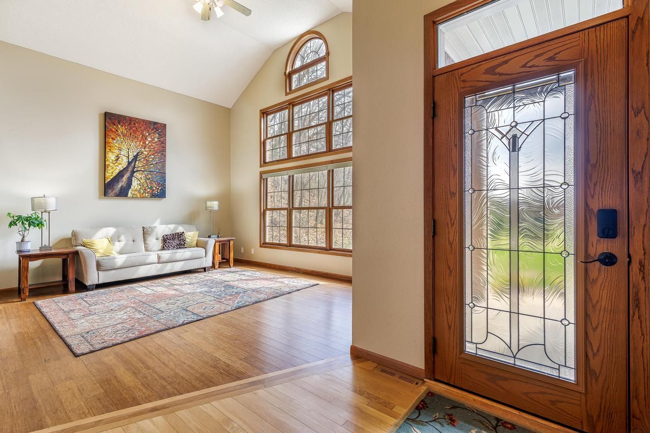 This stunning home sits on nearly 4 private acres, offering breathtaking scenic views from every angle. Soaring cathedral ceilings and floor-to-ceiling windows fill the home with natural light. Enjoy a cozy living room with gas fireplace, plus formal living and dining spaces with bamboo floors. The renovated kitchen and brand-new master bathroom add modern comfort, while the fully redone lower level provides extra living space. A geothermal system ensures energy efficiency. Conveniently located just 1.3 miles from the interstate in the desirable Hidden Valley subdivision.