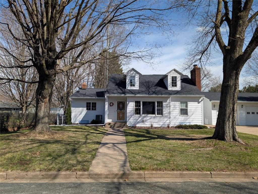 Set on a spacious double lot in Menomonie's picturesque Oak Park neighborhood, this 4-bedroom, 2-bath 1.5-story home delivers space, upgrades, and everyday livability. With over 2,200 total sq. ft., enjoy a large sun-filled living room, a separate family room, and a fully finished basement recreation space anchored by a cozy gas stove - ideal for entertaining or relaxing. The kitchen features Corian countertops and modern stainless appliances, while real oak hardwood floors and tile throughout add durability and style. The front yard offers southern exposure, while the fully fenced north-facing backyard provides shade, two sheds, and a fire pit - perfect for pets, play, and gatherings. The oversized 3-car garage is heated, insulated, and finished for year-round use. Updated furnace and air conditioner. New roof Sept. 2025. Close to Mayo, schools, dining and entertainment. Schedule your showing today.