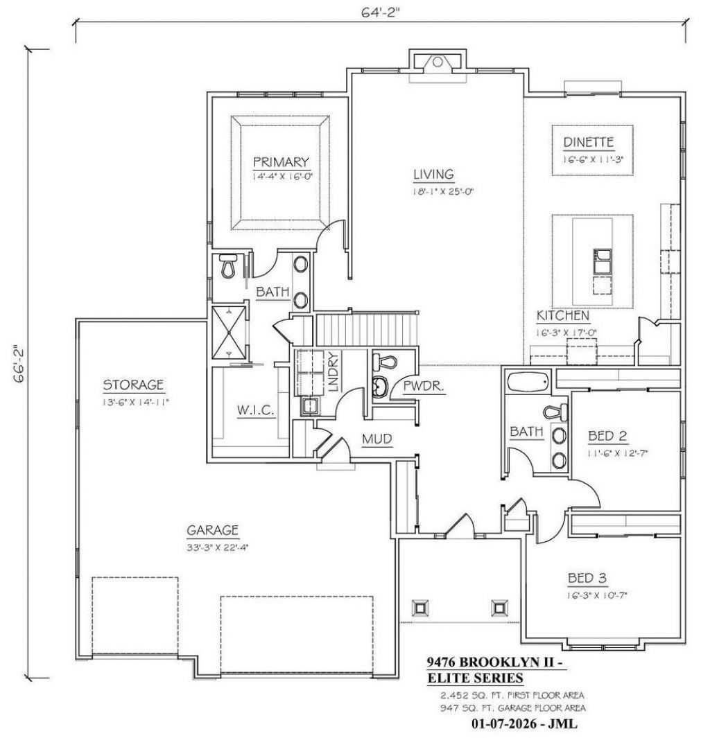 HOUSE IN ROUGH CARPENTRY.3 bedrooms/2.5 bath/Elite series ranch. Basement has 1 egress slider window & drain/vent rough-in for future full bath. Master bath has ceramic tiled walk-in shower/2 shower heads/granite or equivalent vanity tops/double sinks. Large WIC master suite. Family bath has double sinks. 9' 1st floor ceilings: pitched ceiling in living room. Tray ceiling in master bedroom. Box ceiling in kitchen/dinette. Elite series kitchen cabinets are staggered w/cabinet crown moulding & hardware/granite or equivalent countertops/backsplash/island with sink/large pantry closet. Laundry/mudroom with drywall lockers, closet, cabinets & sink. Bedroom ceiling fans. Covered front porch with box posts. 3-car garage with large storage area (13'6'' x 14'11'')/openers/remotes/keypad.
