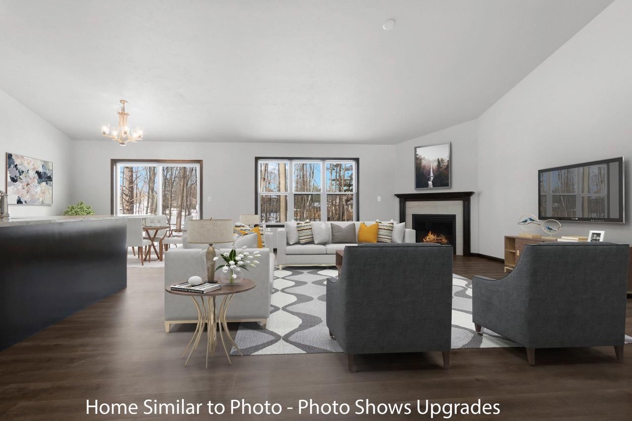 Newly constructed 3 bedroom, 2.5 bath ranch style home w/1,629sf in Village of Howard. Front foyer opens to a large living room w/gas fireplace. Kitchen features custom maple cabinets, island w/sink & snack counter, pantry & SS dishwasher & microwave. Master suite offers a step tray ceiling, large WIC & private bath w/double sinks & walk-in shower. Convenient 1st-floor laundry w/half-bath. Bench w/hooks off of garage entry. Basement features an egress window & is plumbed for a future bath. Attached 3-stall garage w/basement access. Exterior features a covered porch, horizontal & vertical siding, & stone all per plan. Main photo is computer generated. Photos are similar but may not be exact. Virtual staging in photos.