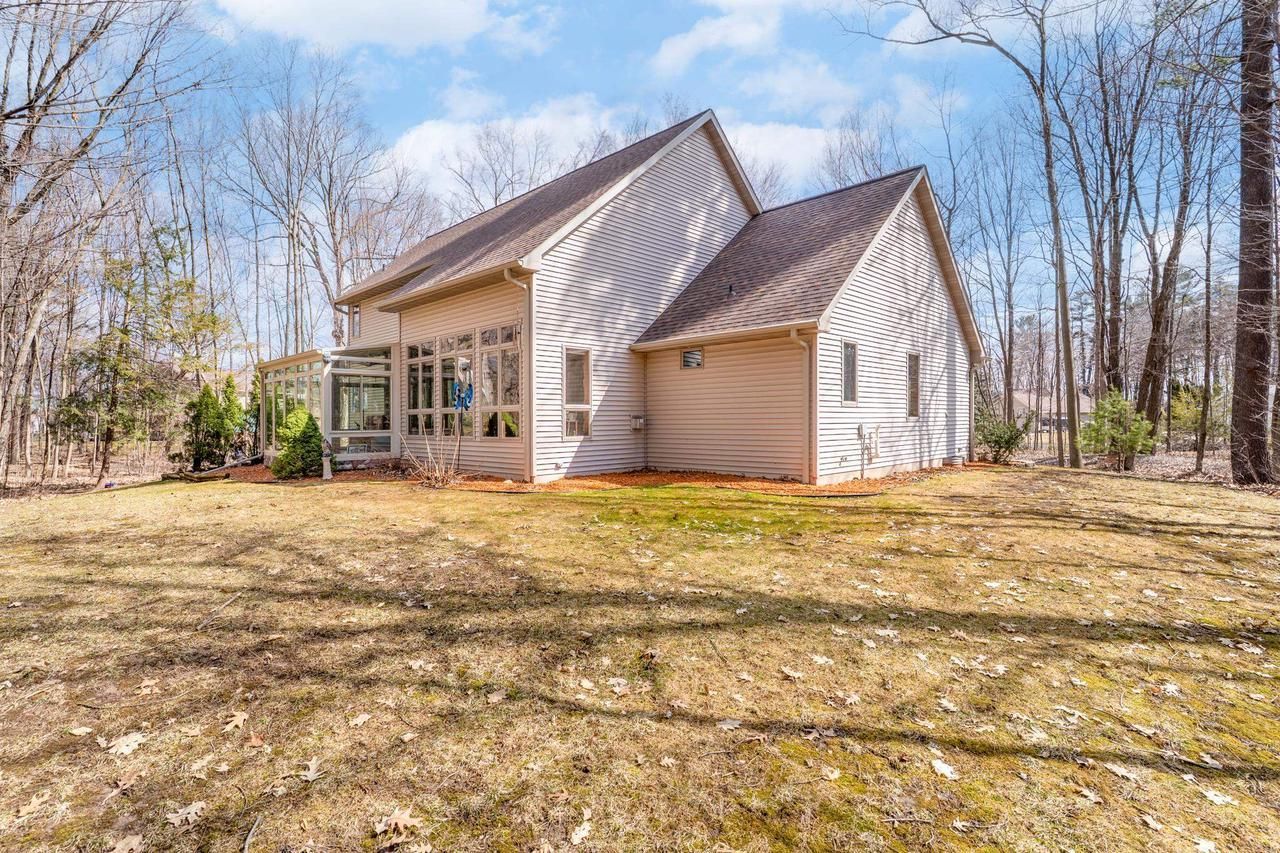 Custom-built 2 story nestled on a wooded 1.4-acre cul-de-sac lot, this home features 3 bedrooms plus a huge bonus room (possible 4th), 2.5 baths, & stubbed/drywalled lower-level bath ready for your finishes. The great room boasts cathedral ceilings & a floor-to-ceiling stone fireplace. Enjoy an open-concept kitchen/dining area with real hardwood floors, quartz countertops, and abundant cabinetry. Relax in the glass sunroom with serene views. Main floor master suite offers private bath & walk-in closet, dining/sitting rm offers flexibility. Upper loft adds extra living space. Finished lower level includes family room, sauna, workshop area & storage. 3-car garage with basement access. Andersen windows, NEW roof (2025), A/C (2023), furnace (2019), water heater (2017). Immaculate home!