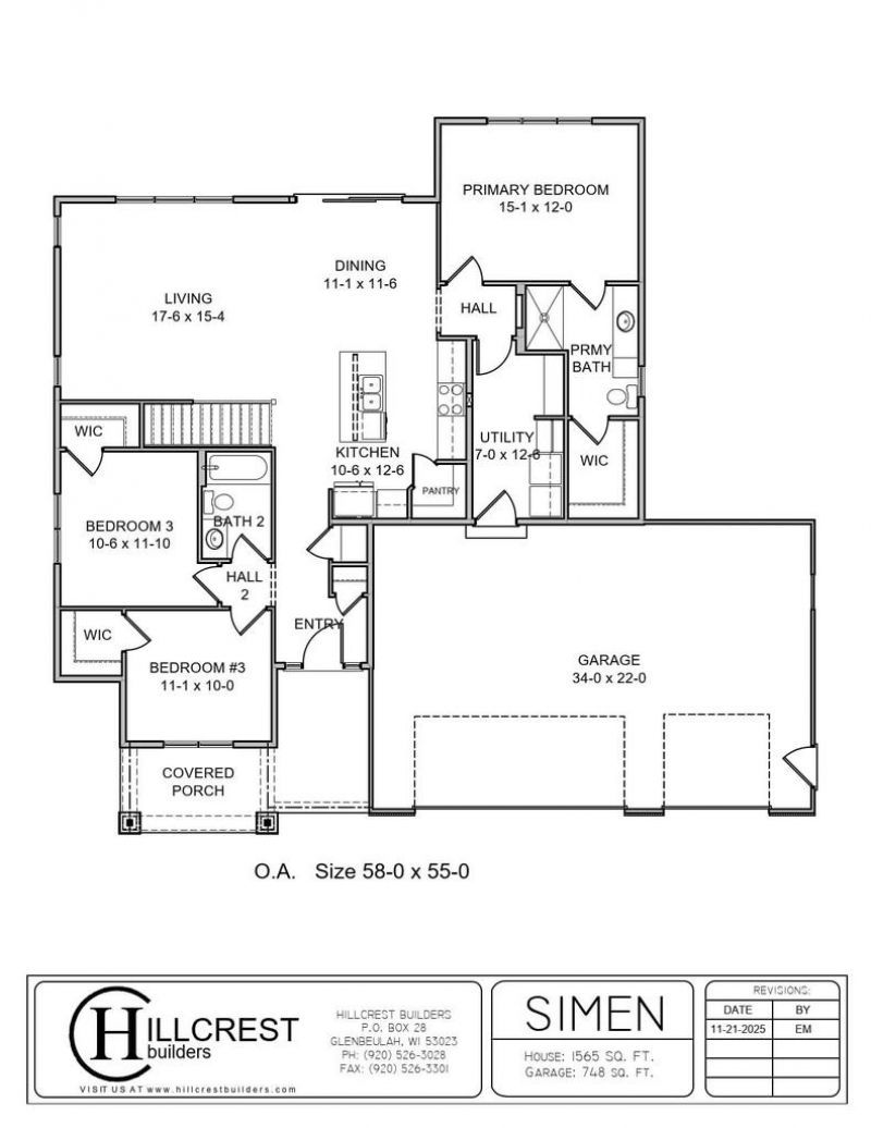 NEW CONSTUCTION HILLCREST BUILDERS The ''Simen Design'' 3 bedroom, 2 full baths with 3 car attached garage-1565 square feet ranch-style home with open floor-plan, living room-dining room with sliding glass patio door, kitchen with walk-in pantry and a split-bedroom design. Hillcrest Builders standard features include; maple cabinets, quartz counter-tops, laminate flooring, 9''ceilings, and oversize windows. Enjoy country living with a perfect blend of nature and easy access to many modern day conveniences. Great Location-approximate;y15 minuets east to I43 and 15 minutes west to Hwy 151. Situated on the NE corner of the Kettle Moraine Forest and in close proximity to hiking, bike, bridal and snow-mobile trails-minutes to Elkhart Lake, Chrystal Lake,, and the Road America Race Track.,