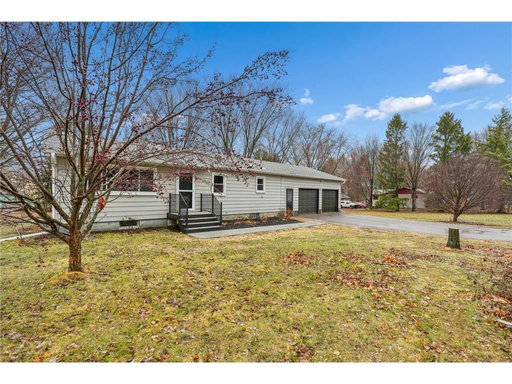 Beautifully remodeled one-story home set on a beautiful 0.42 acre lot. This move-in ready property blends classic charm with modern updates, featuring gorgeous refinished original hardwood floors & freshly painted interior through-out. The kitchen has been completely updated with stunning white cabinetry, added pantry storage, new flooring, stainless steel appliances, and updated fixtures. Enjoy the newly constructed maintenance free front porch and welcoming sidewalk entrance, along with all new landscaping that enhances the home's curb appeal. Additional updates include new gutters, new garage doors, updated 200-amp electrical service, a newer furnace (2019) natural gas water heater (2023). The lower level offers a clean, bright, and usable laundry area with washer and dryer included, plus ample space for storage or future finishing. Situated on nearly half an acre, this property offers space, updates, and comfort ready for its next owner to move in and enjoy