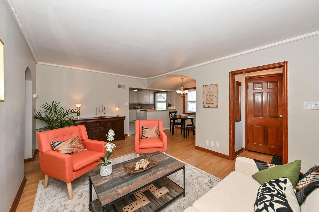 Situated on a lovely corner lot with mature trees, this charming Greenfield home has so much to offer! Generously sized and updated kitchen and bath, newer vinyl windows and a brand spankin' new furnace means peace of mind for this home's next steward. Details of crown molding, oak hardwood and six-panel doors help balance old-world craftsmanship with modern convenience. Venture downstairs to find a spacious finished rec room and updated laundry room with high-end appliances. Backyard is fully fenced, and features a recently-poured concrete patio, perfect for these upcoming summer nights. Top it all off with a 2.5 car garage and additional parking slab, and this one is sure to check some boxes!