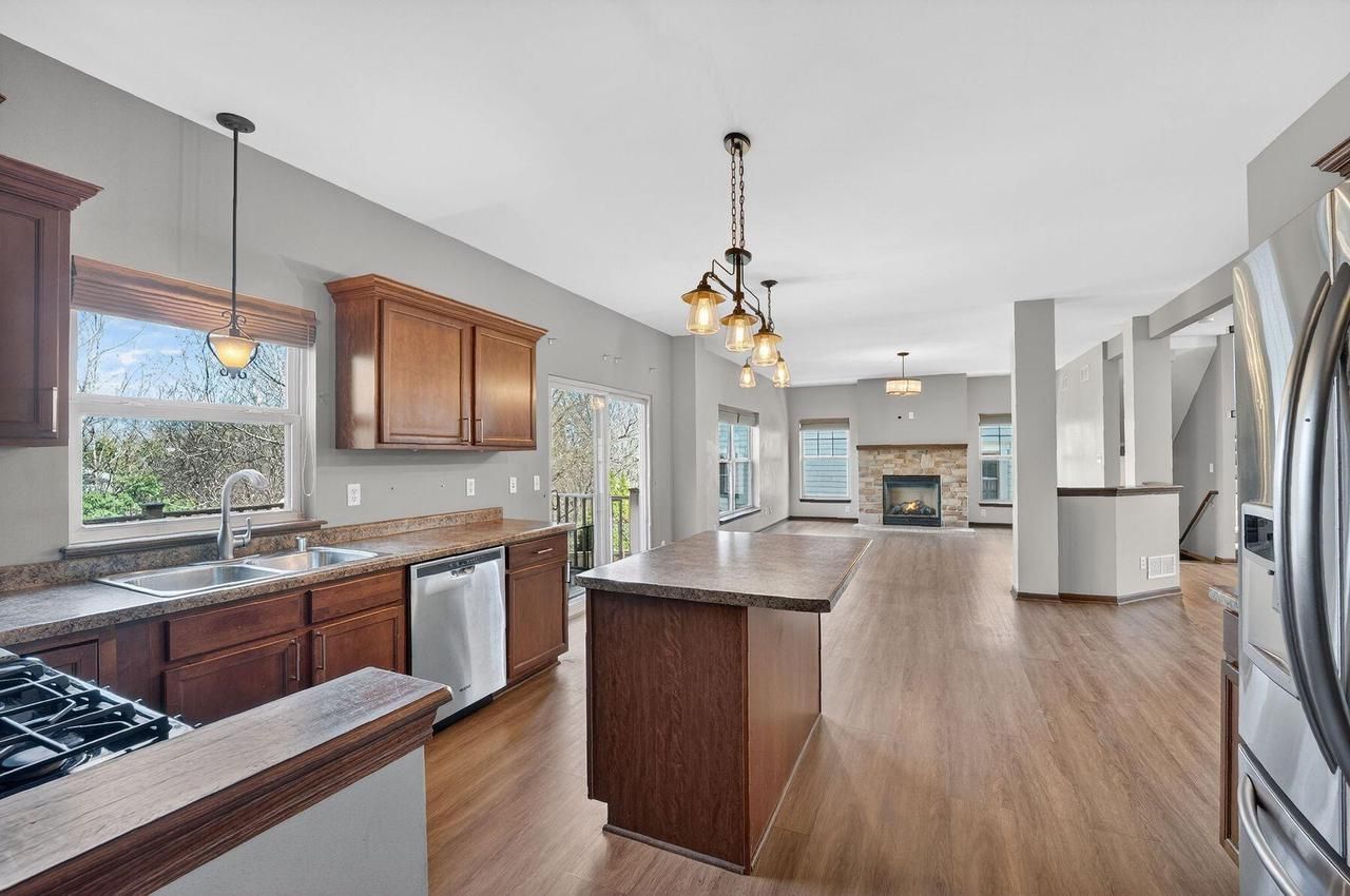 This beautifully maintained 3BR/2.5BA home shines with exceptional curb appeal and thoughtful updates. The main level features stylish LVP flooring, a formal dining room, and a sun-filled living room anchored by a gas fireplace. The large kitchen with a center island flows seamlessly to a low-maintenance composite deck overlooking the fenced-in yard and lower patio. Convenience is key with a main-floor mudroom and half-bath off the 2.5-car garage. Retreat upstairs to a versatile loft and spacious bedrooms, including a primary suite with a walk-in closet, large ensuite, and private office/sitting area. The walk-out LL is a blank canvas, already stubbed for a bath & plumbed for a second kitchen or wet bar. Located in the desirable Cherokee Point neighborhood, welcome home! Virtually staged.