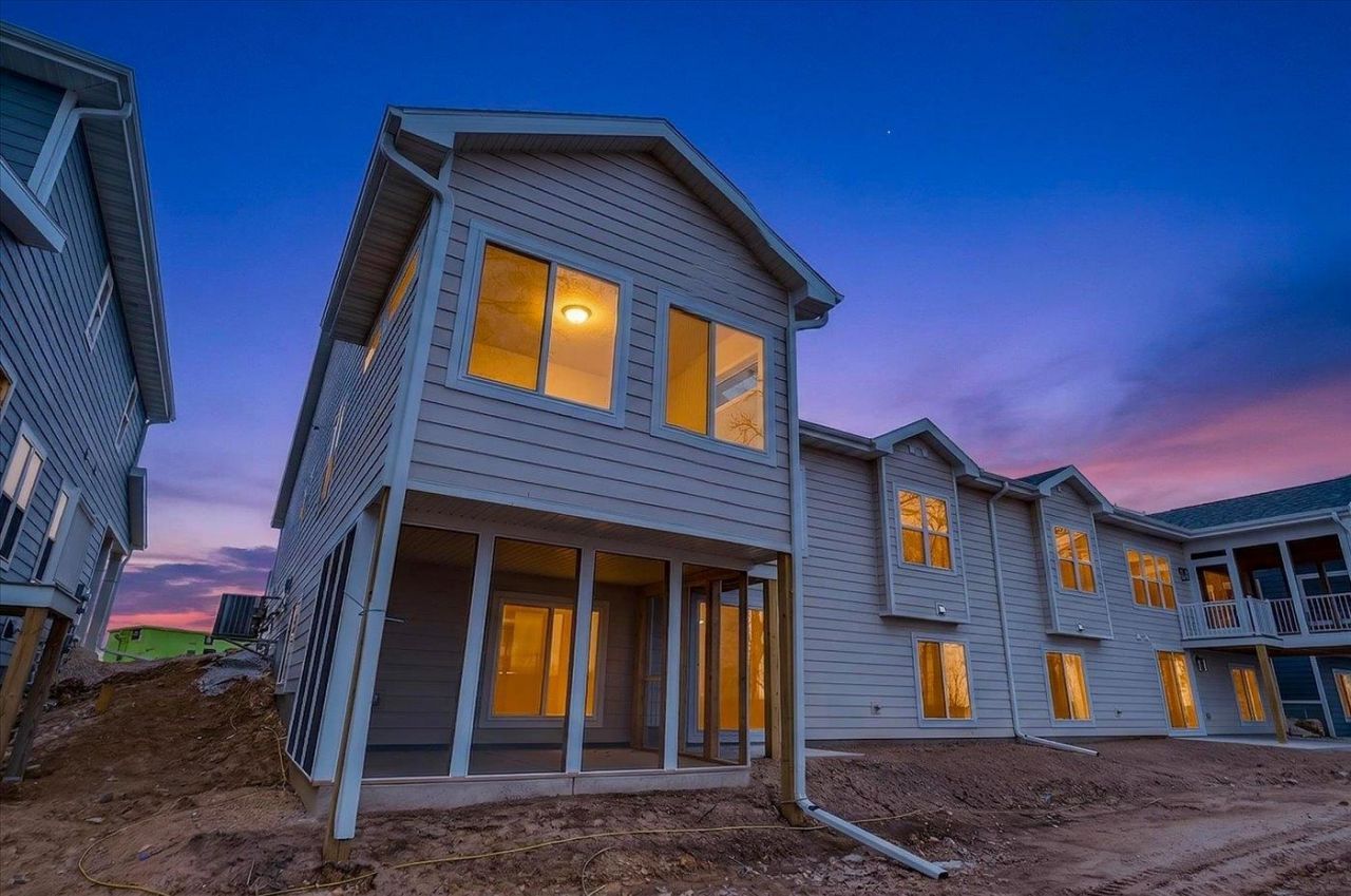 Photos are of similar unit Buyer will make all selections. You will love the amish custom cabinetry in this big open kitchen w/large center island, quartz countertops, beautiful LVP flooring, large open dinette, cathedral ceiling & custom FP. Primary suite offers cathedral ceiling, huge walk-in closet & gorgeous bath w/custom walk-in tile shower. Screened in porch or upgrade to 4 season rm. LL can also be finished to include family rm, 3rd bdrm, full bath & flex rm. Zero steps from garage & front door. Fantastic location to hwy 19, 51, I90/94 & within 4 miles to Costco, Target, shopping & restaurants. 22 acre Park includes pickleball, bike/walking trails, zip lines, splash pads, BB courts. Call to view model & discuss customizing this gorgeous condo! This unit included 4 season room.