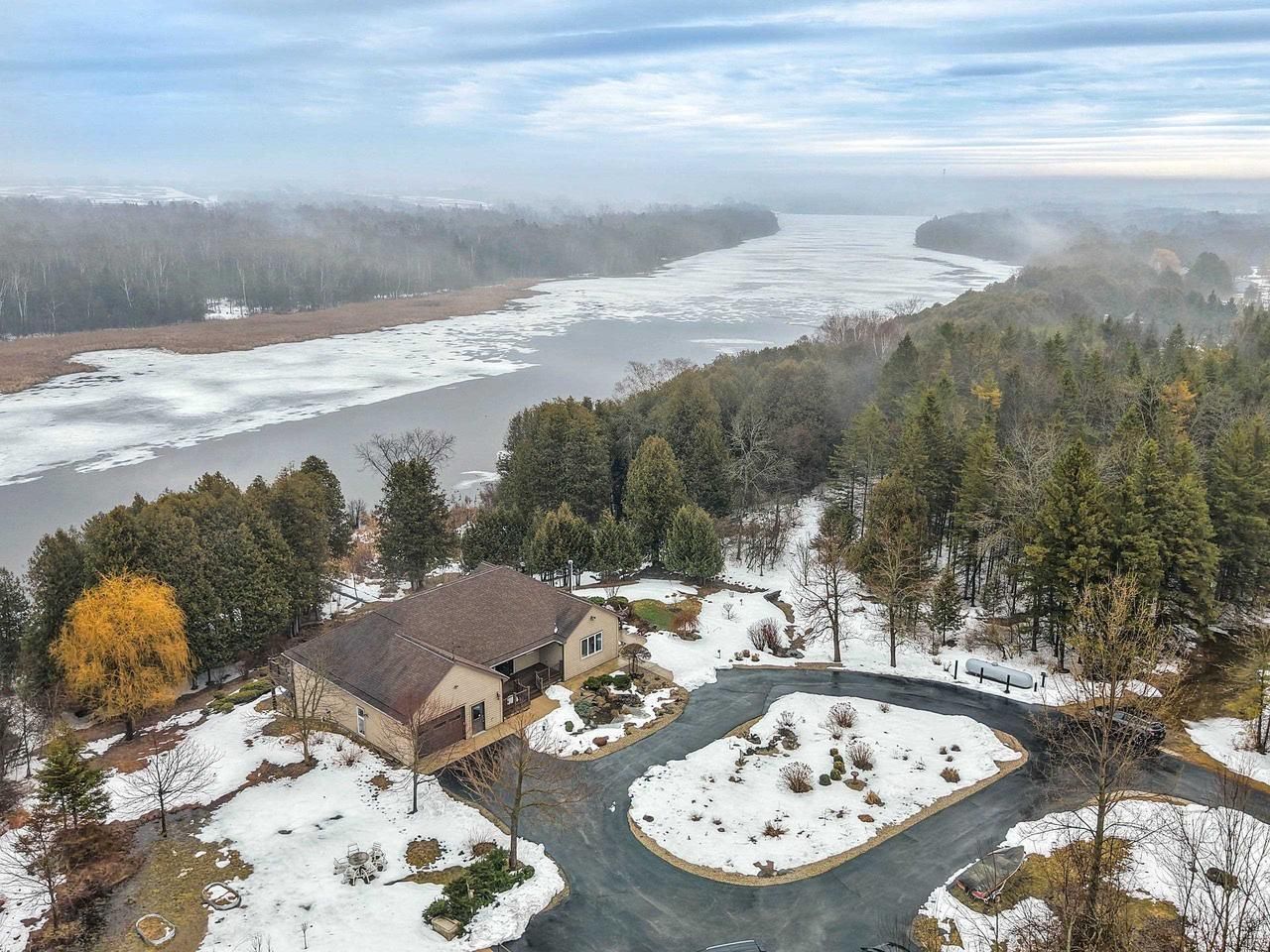 Waterfront living on Mill Pond flowing into Ahnapee River! Expansive 3BR, 3,989 sqft home sits on 5.12 acres in Door County, offers both privacy & recreation w/your own dock. Designed for comfort & accessibility, home is ADA compliant throughout. Stunning 2-way FP anchors the open living/dining areas, creating a warm & inviting flow. Mn flr primary suite is thoughtfully arranged so you wake up to tranquil views of nature each morning. Fin LL features spacious rec rm, 2 adt?l bdrms,& sunrm w/peaceful water views. Extensive updates incl roof & cedar siding (?14), Trex decks & ramps (?13), generator & mechanicals (?14), new c-tops/isl (?23), updated flrg & baths. See list of features/updates. A rare blend of space, function & waterfront lifestyle. 225' pond frontage. Some virtually staged pix