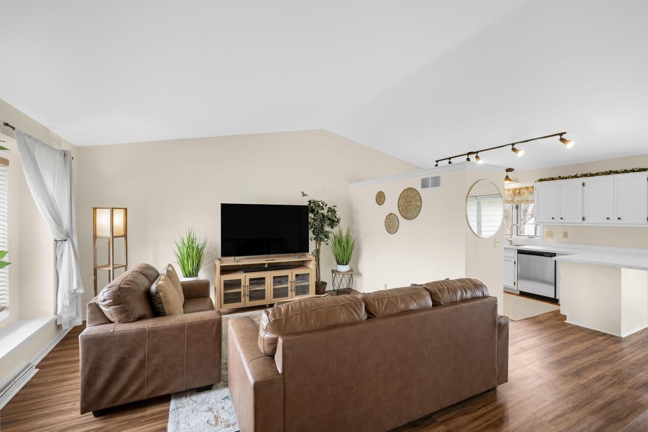 Rare 2BR 2BA Side By Side Ranch Townhouse in an Awesome Neighborhood. Totally updated Throughout. Open Concept Floor Plan Features Fresh Paint, New Floors, Vaulted Ceilings and a a Brand New Kitchen w New Cabs, Counters and Appliances. Dinette Area w BICC and Patio Doors to Backyard. Main Floor Utility Room. Fantastic MBR w Private MBA. The Lower Level Rec Room is Perfect For Entertaining. Abuts a Green Space and the Walking Trails. HURRY!