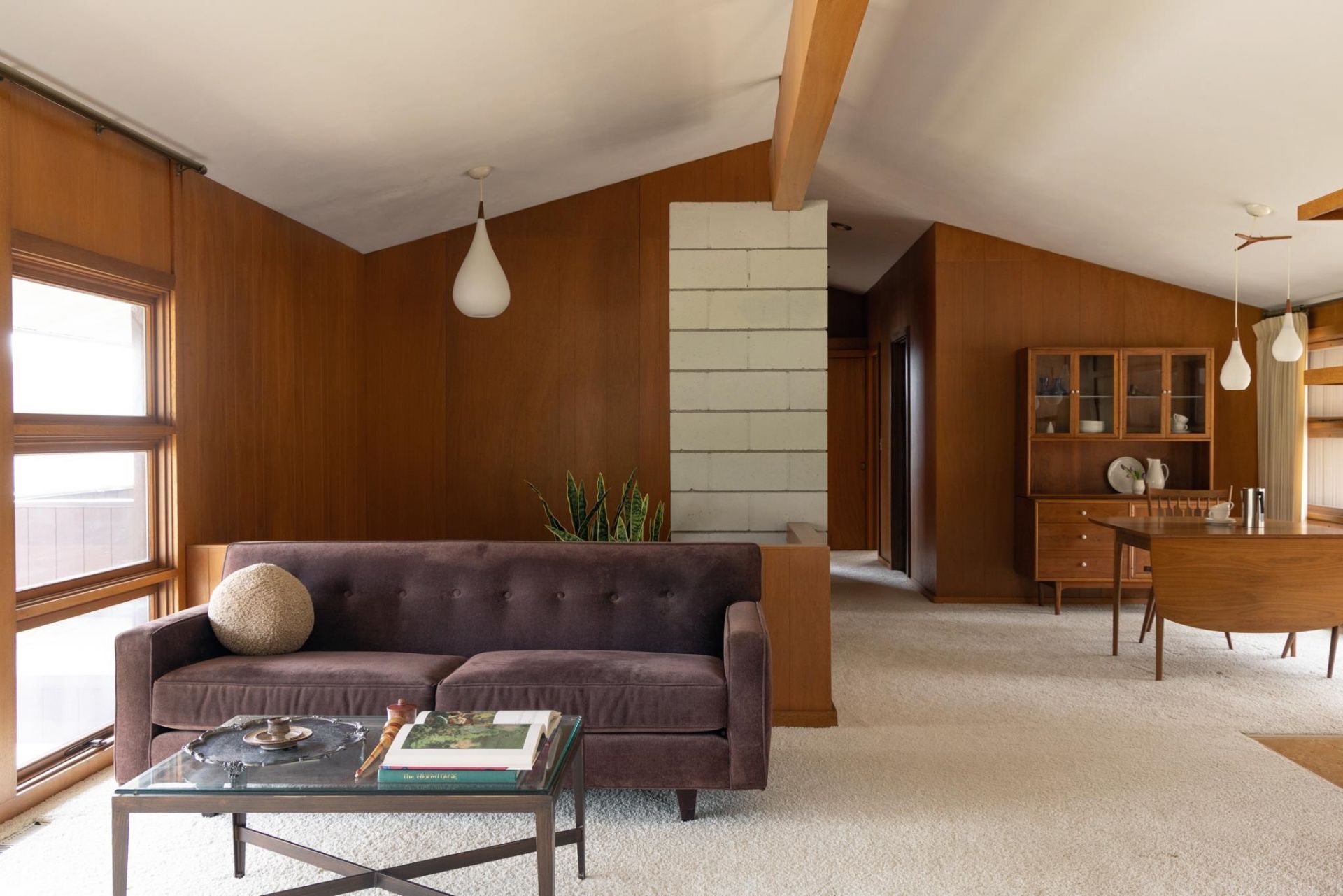 Showings to start on April 15. The architecture does the work. A 1957 Usonian-lineage home in Richland Center ? mahogany paneling floor to ceiling, a concrete block chimney rising through the heart of the living room, and band windows that open the entire east wall to a panoramic hillside view. Vaulted ceiling with exposed timber beams. A second-floor cantilever pushed out over the slope. Wide overhanging eaves that bring the outside in without asking permission. Herbert Fritz Jr., a Frank Lloyd Wright apprentice designed this house the way his father was taught at Taliesin ? let the site speak, let the materials mean something, let the structure be the ornament. It works. The wood-paneled hallway draws you through like a path through trees. Every room has a window with a reason. Carl Meadows had an appointment at Taliesin ?Frank Lloyd Wright turned him away & Fritz Jr. took the project instead. Offered for the first time in a generation, for the buyer who knows what Taliesin means.