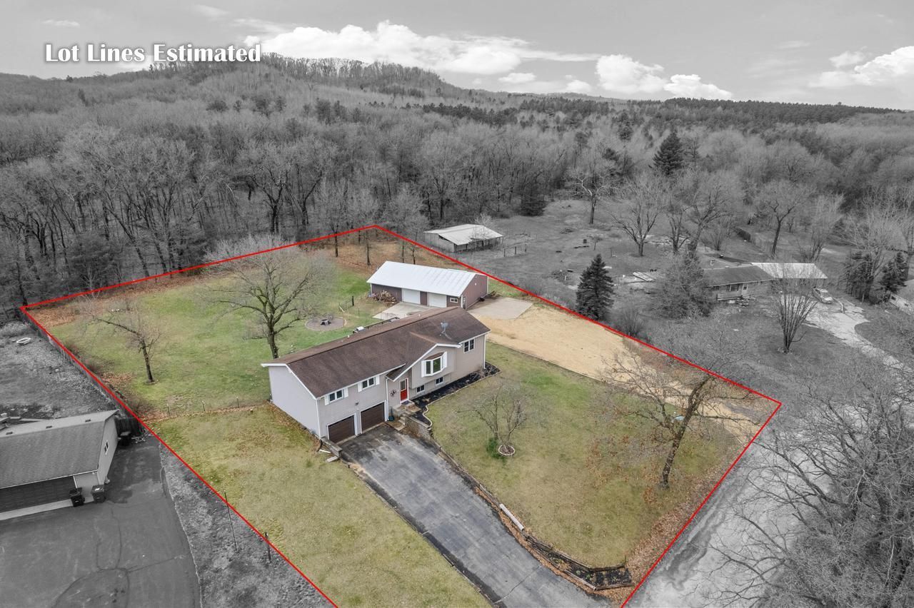 Generous space in a desirable setting--this 5-bedroom, 2.5-bath raised ranch on just over 1 acre offers room to live, gather, and enjoy both indoors and out. Perched atop the hill, the home is filled with natural light and opens to a deck overlooking the fenced backyard, complete with refreshed landscaping and a fire pit for relaxing or entertaining. Since purchase, the seller has completed several updates including painting much of the home, installing a new bay window, resurfacing countertops, updating outlets, adding new garage doors, and refreshing the gravel driveway with fresh stone and railroad tie edging. A valuable bonus is the additional 48 x 28 pole shed with electricity and heat--ideal for hobbies, storage, or extra flexibility.