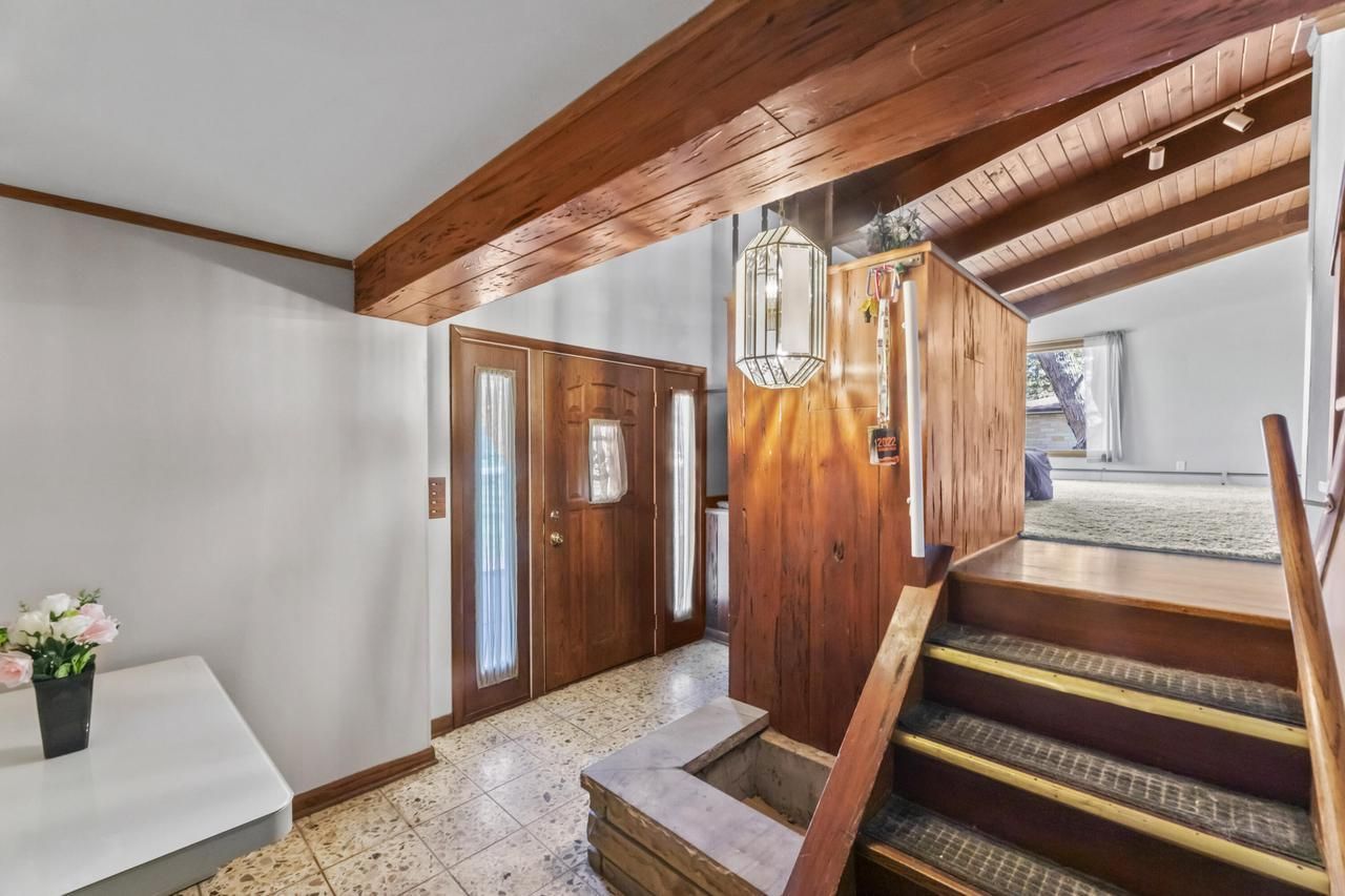 Mid-Century Masterpiece in Menomonee Falls! Experience the perfect marriage of timeless character and modern flexibility in this stunning mid-century inspired tri-level. From the moment you step inside, you'll be captivated by the architectural drama of soaring vaulted wood ceilings and the warmth of gleaming hardwood floors. The Heart of the Home has Architectural Charm: A light-filled living room anchored by a beautiful gas brick fireplace--perfect for cozy Wisconsin evenings. The kitchen and dinette flow seamlessly together, featuring patio doors that invite the outdoors in. Space for Everyone.