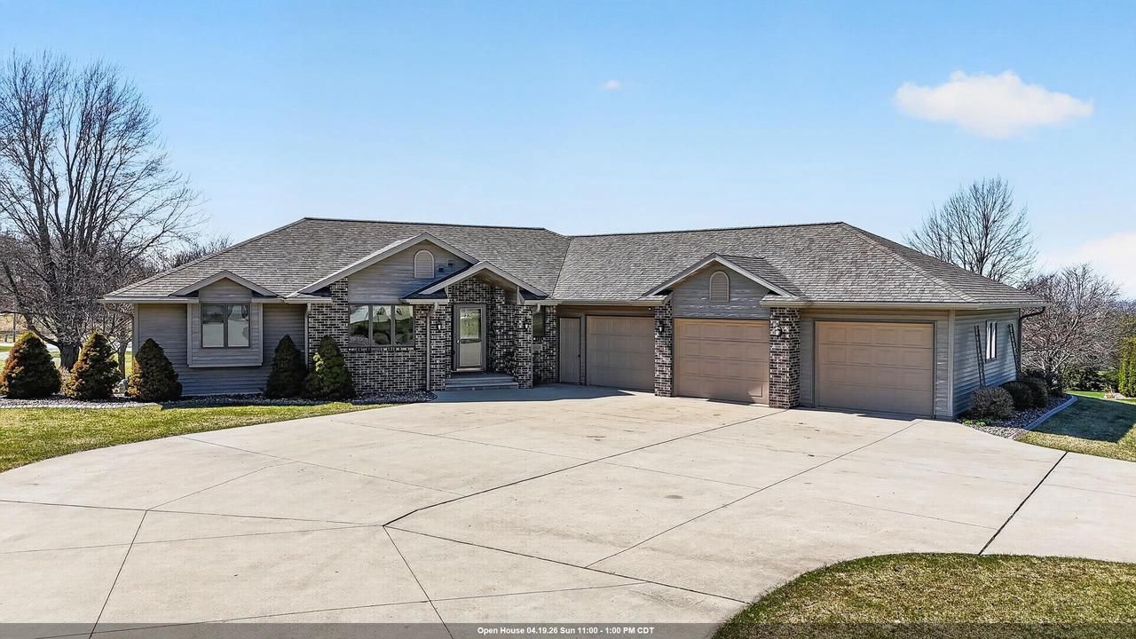 Beautiful 4-bedroom, 3-bath ranch with walkout lower level, ideally located just minutes from town and Wisconsin essentials like Festival Foods, Kwik Trip and Culvers. Situated on a spacious 1.5-acre subdivided lot, enjoy the privacy of rural living with the comfort of nearby neighbors. Features include a large 3-car heated garage, eat-in kitchen, and open-concept dining and living areas with views of your large parcel. The expansive rec room offers plenty of space for relaxing or entertaining. Close to walking and biking trails and Kiekhaefer Park. Please allow 48 hours for binding acceptance; seller reserves the right to accept an offer sooner.