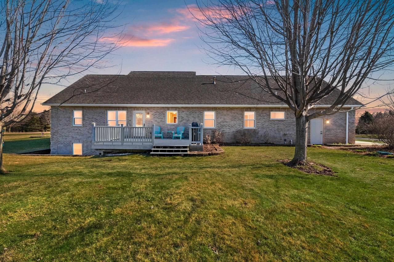 This all Brick Beauty perfectly located mid-way between Appleton & Green Bay oozes curb appeal with it's covered front porch & dormers! Quality custom built 3 bed 3 full bath split bedroom ranch w/ spacious rooms & a 2.4 acre playground. Vaulted living room w/ open staircase & built-ins. Quartz kitchen w/ pantry. Primary suite pleases w/ lighted tray ceiling, 2 closets, tiled shower w/ dual shower heads & soaking tub. 1st flr laundry w/sink, cabinetry & W&D. Finished LL features full windows, a huge rec room providing flexibility of use & the 3rd bath. Easily add 4th bed - mound is sized for it. Utility room w/ wall of shelving for storage needs. Oversized finished garage w/ 39' deep 3rd stall, air compressor, insulated 9' high doors & stubbed for heat. RV parking slab. Composite deck.